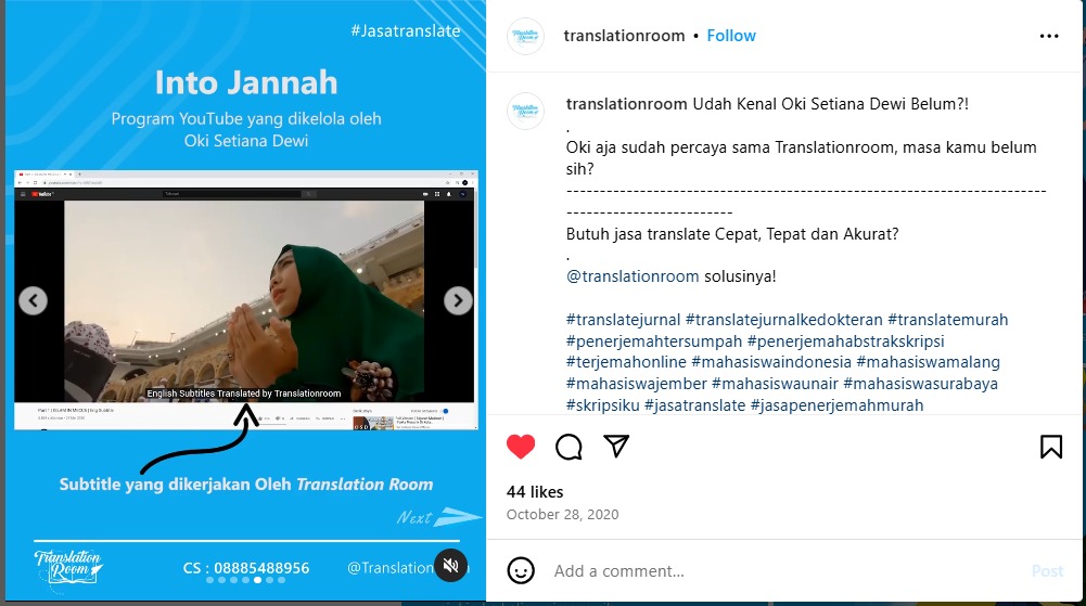 I engage in collaboration with Oki Setyana Dewi to provide English subtitles for her YouTube videos